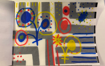 Students created booklets inspired by Hervé Tullet’s Ideal Exhibition. Students used line and dot and splotch and tore, cut, and glued to create unique and interactive booklets. This project pushes students to not worry about perfection because the beauty of these works is in the imperfection. This project is split into two days, one of decorating paper and the other of assembling their booklets.